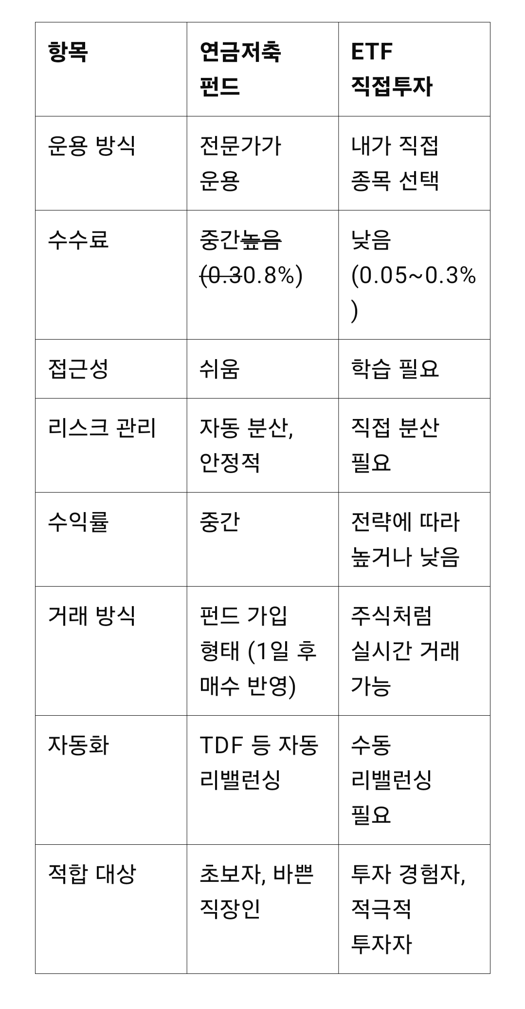 이 글에서는 연금저축을 활용한 펀드 투자와 ETF 직접투자의 차이,