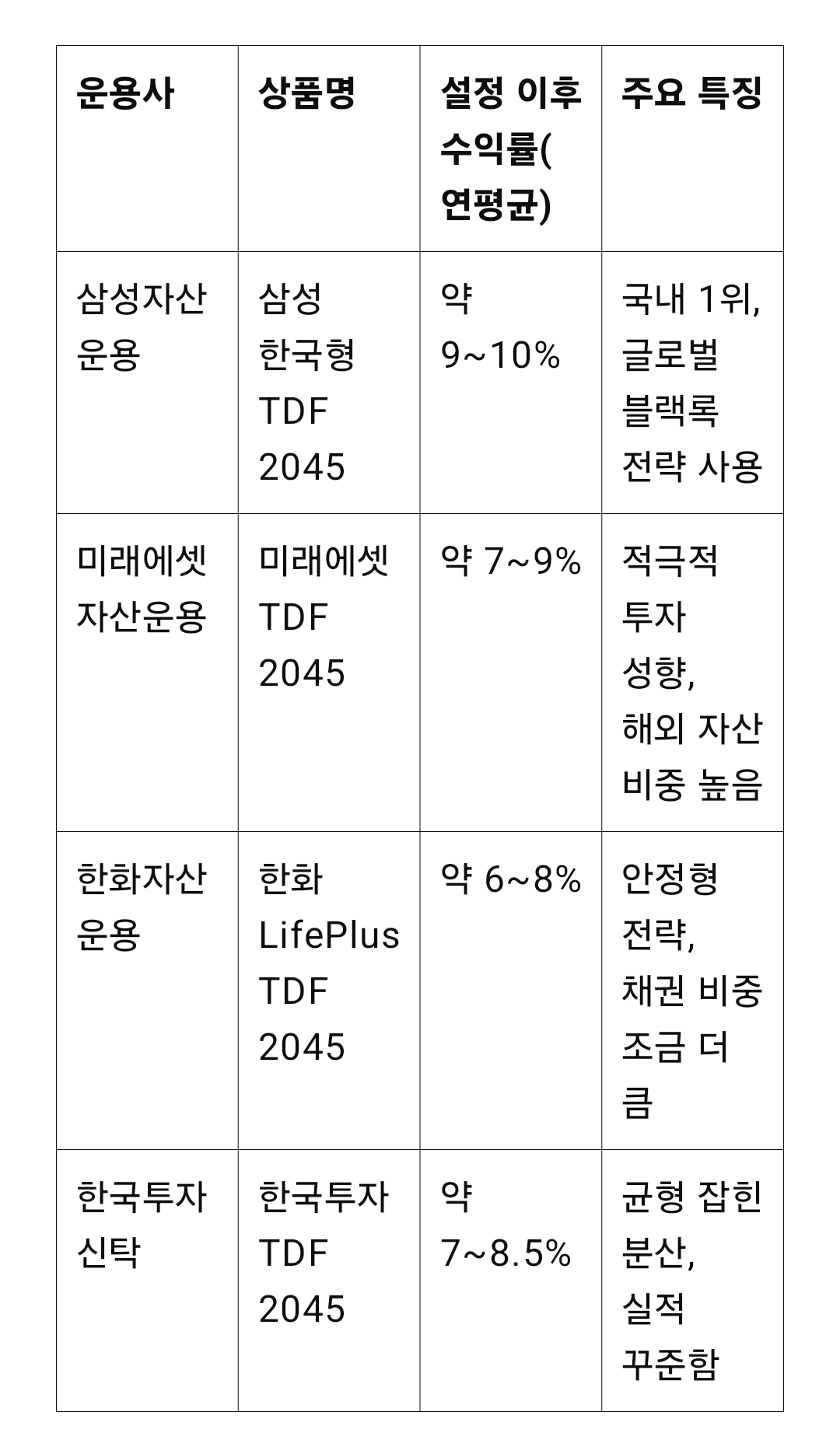 TDF의 개념부터, 실제 수익률, 자산 구성 방식, 주요 운용사 비교, 추천 포인트까지