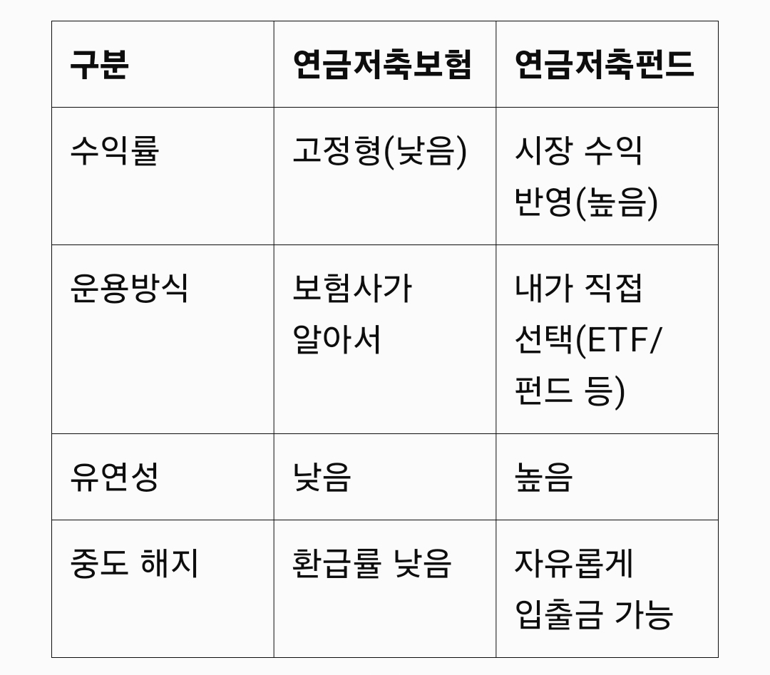 2. 연금보험 vs 연금저축펀드 상품을 잘못 고르는 실수