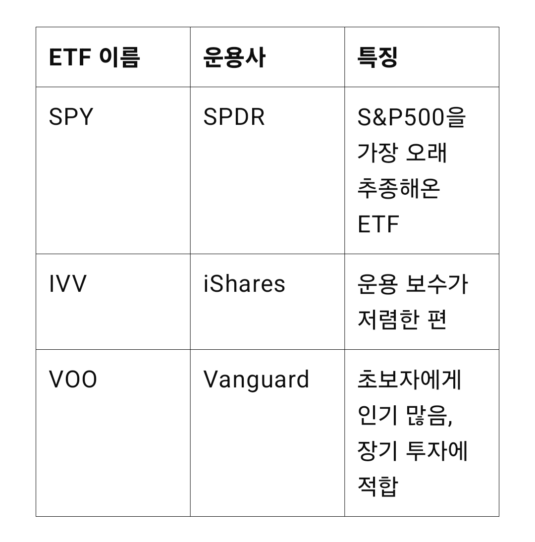 S&P500에 직접 투자할 수는 없지만, S&P500을 따라가는 ETF(상장지수펀드)에 투자하면 거의 똑같은 효과를 볼 수 있다.