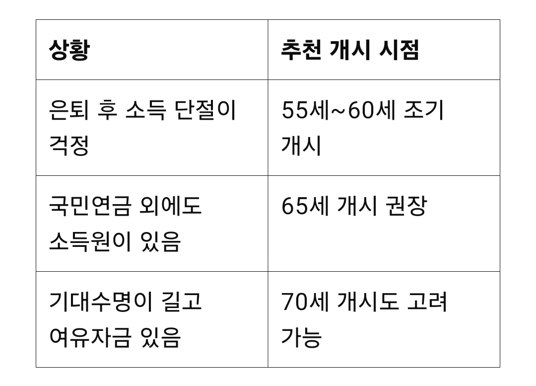 은퇴 직후 소득 공백이 크다면 빠르게 수령 개시해서 생활비에 보탬.