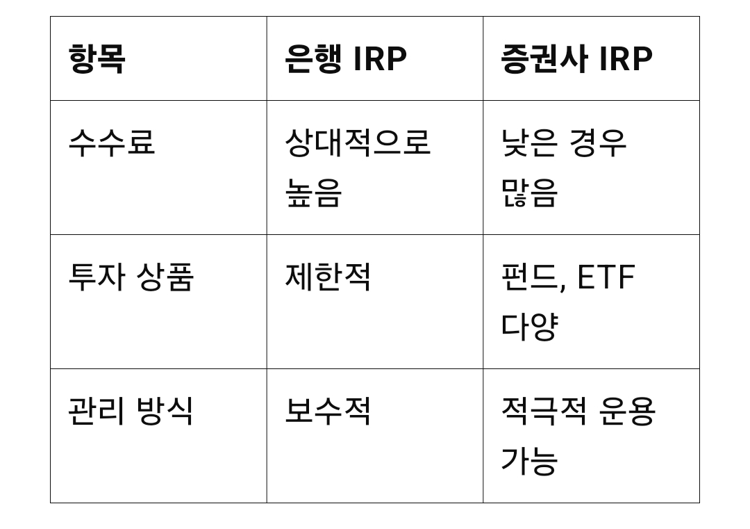 → IRP는 퇴직금을 운용하거나, 세액공제 한도를 늘리고 싶은 분들에게 적합