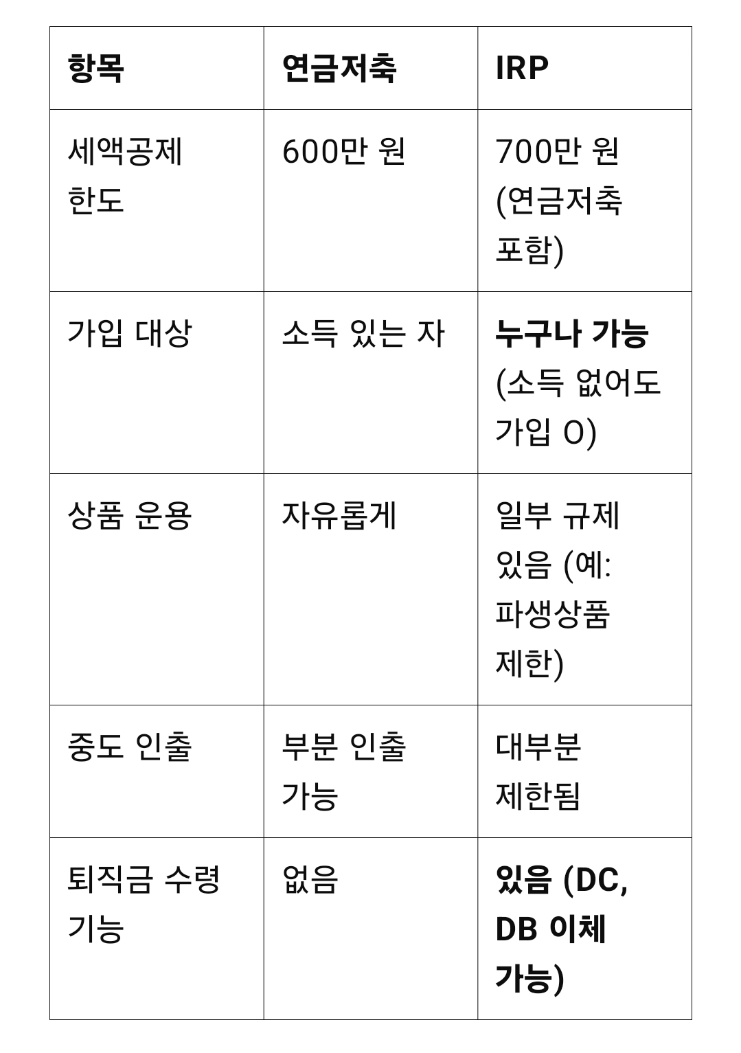 → IRP는 퇴직금을 운용하거나, 세액공제 한도를 늘리고 싶은 분들에게 적합