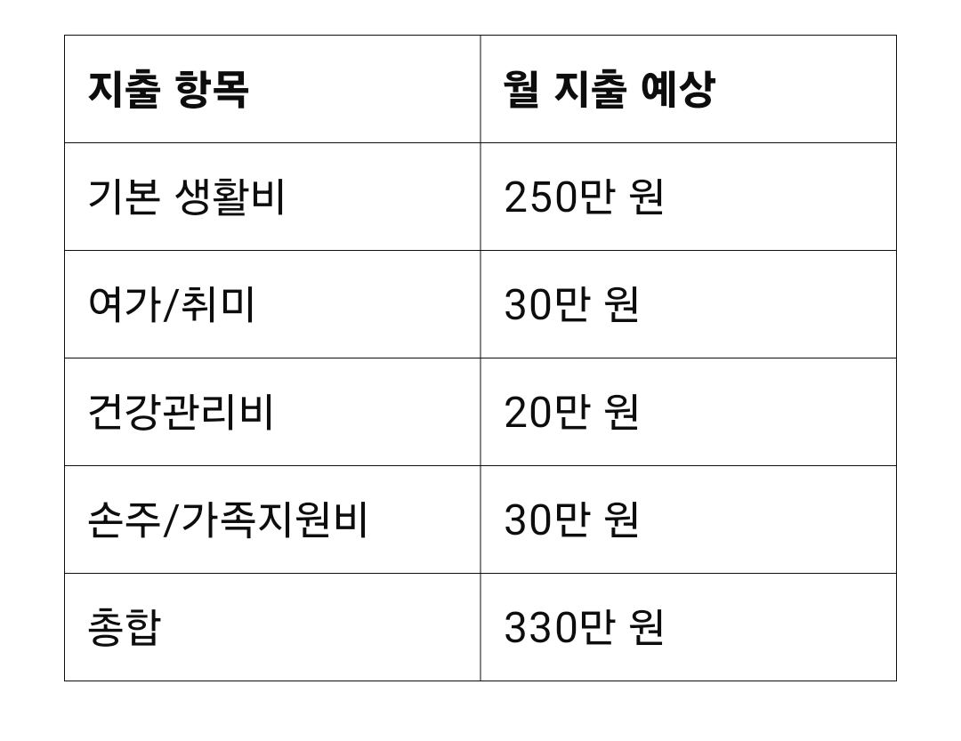 은퇴 후 생활비 월 얼마? (기본지출 + 여가비 + 건강비)