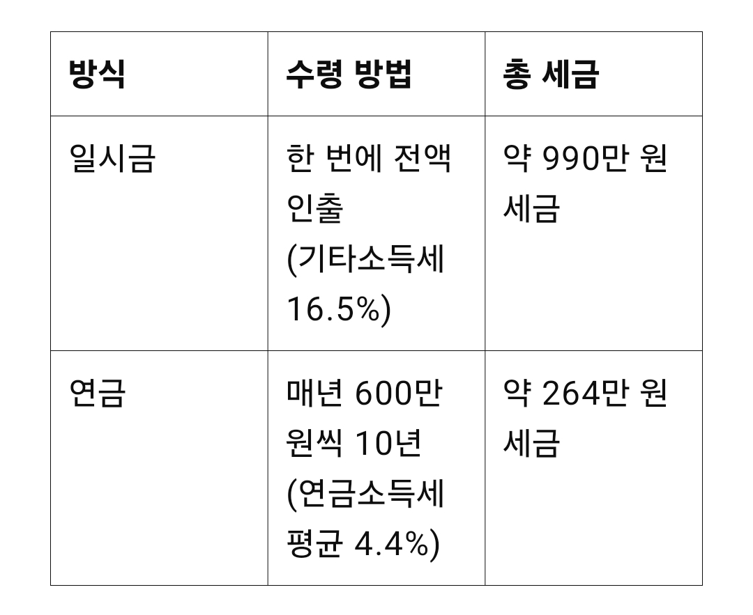 6. 수령 방식에 따른 실제 세금 차이 예시